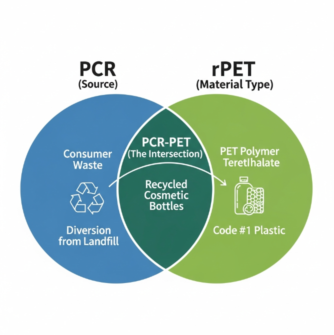 Tento komplexný sprievodca má za cieľ demystifikovať vzťah medzi PCR a rPET a poskytuje kozmetickým značkám, ktoré sa snažia vytvoriť Ekologická kozmetická fľaša a environmentálne uvedomelých spotrebiteľov s jasnosťou potrebnou na prijímanie informovaných a účinných rozhodnutí. Zadefinujeme oba pojmy, rozoberieme ich hlavné rozdiely, analyzujeme ich výkonnosť a preskúmame, prečo je výber správneho materiálu dôležitý pre príbeh udržateľnosti vašej značky.