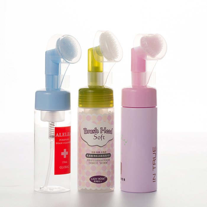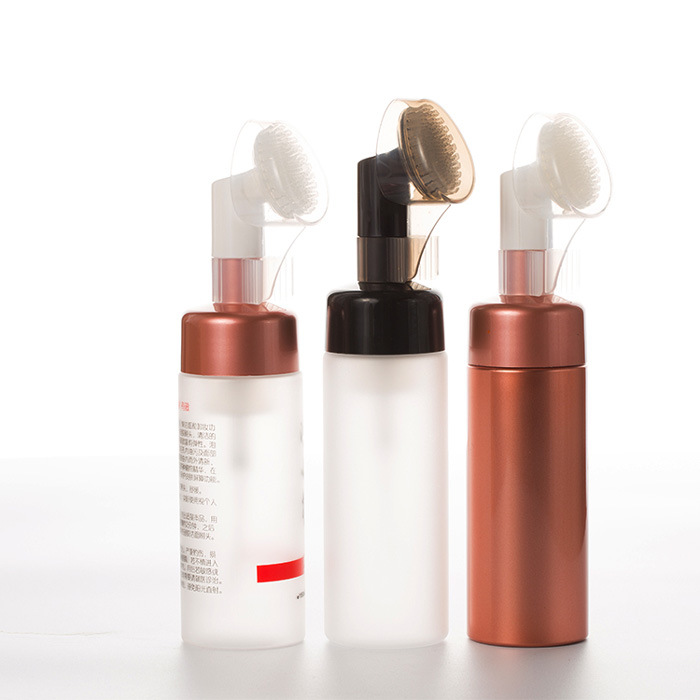 Fľaša na penu s mäkkou silikónovou hlavicou na čistenie tváre Fľaša s penou na čistenie tváre Pet Press Fľaša s penou na tvár 100 ml 120 ml 150 ml 200 ml, skromná penová fľaša prechádza transformačným vylepšením s integráciou mäkkej silikónovej hlavice kefky, ktorá vytvára jedinečne účinný zážitok z čistenia tváre. Tento inovatívny dizajn premení tekuté čistiace prostriedky na bohatú, zamatovú mikropenu po nanesení, ktorá sa okamžite aplikuje a vmasíruje na pokožku cez jemné, hygienické silikónové štetiny. Používatelia profitujú zo súčasného dvojstupňového procesu: dôkladné čistenie podporované schopnosťou peny zdvihnúť nečistoty a jemnou fyzickou exfoliáciou kefky a stimuláciou pórov. Je ideálny na rýchle ranné osvieženie alebo hĺbkové večerné čistenie a ponúka ošetrenie podobné kúpeľom bez námahy doma, zatiaľ čo prirodzená neporézna povaha silikónu zaisťuje vynikajúcu hygienu v porovnaní s tradičnými materiálmi kefiek.